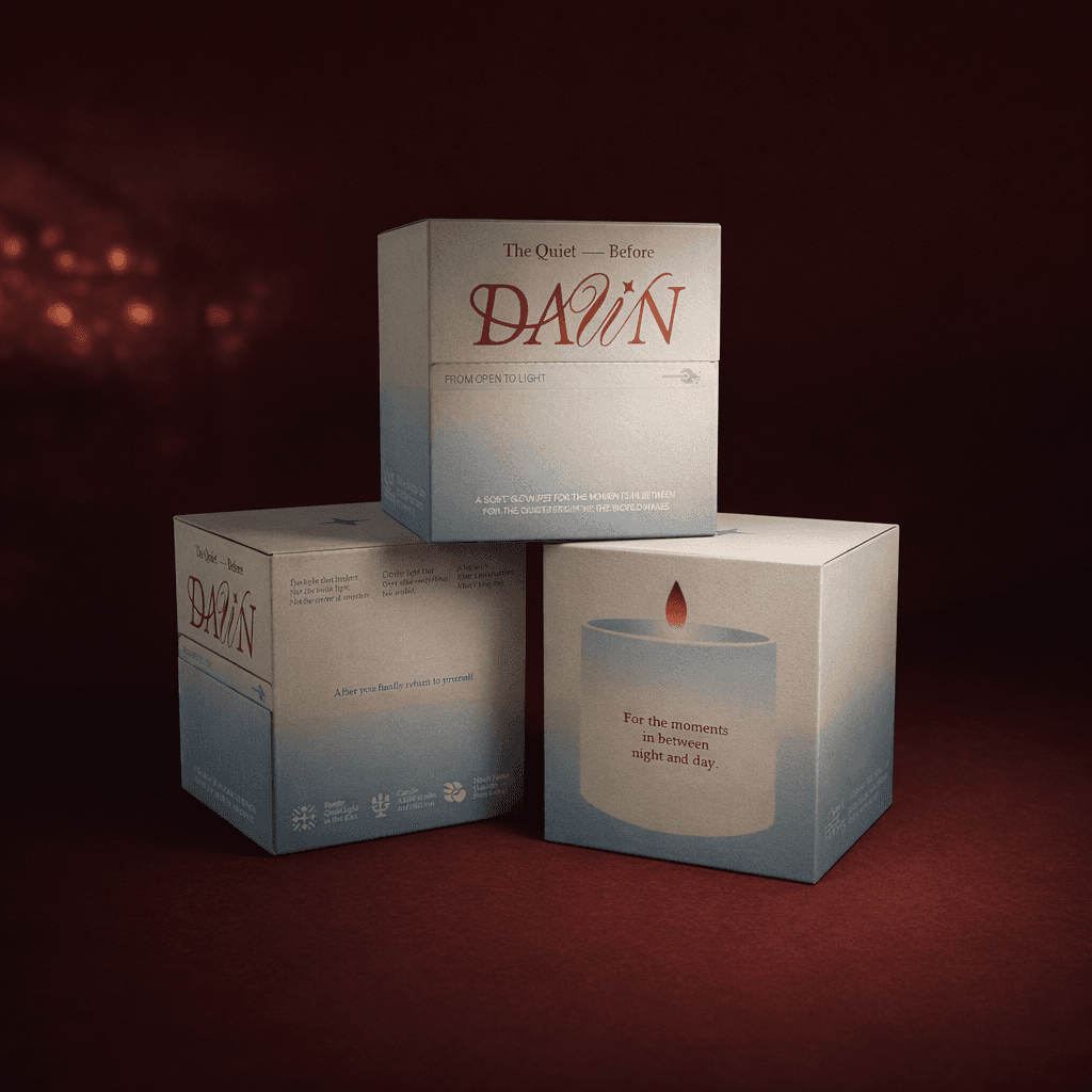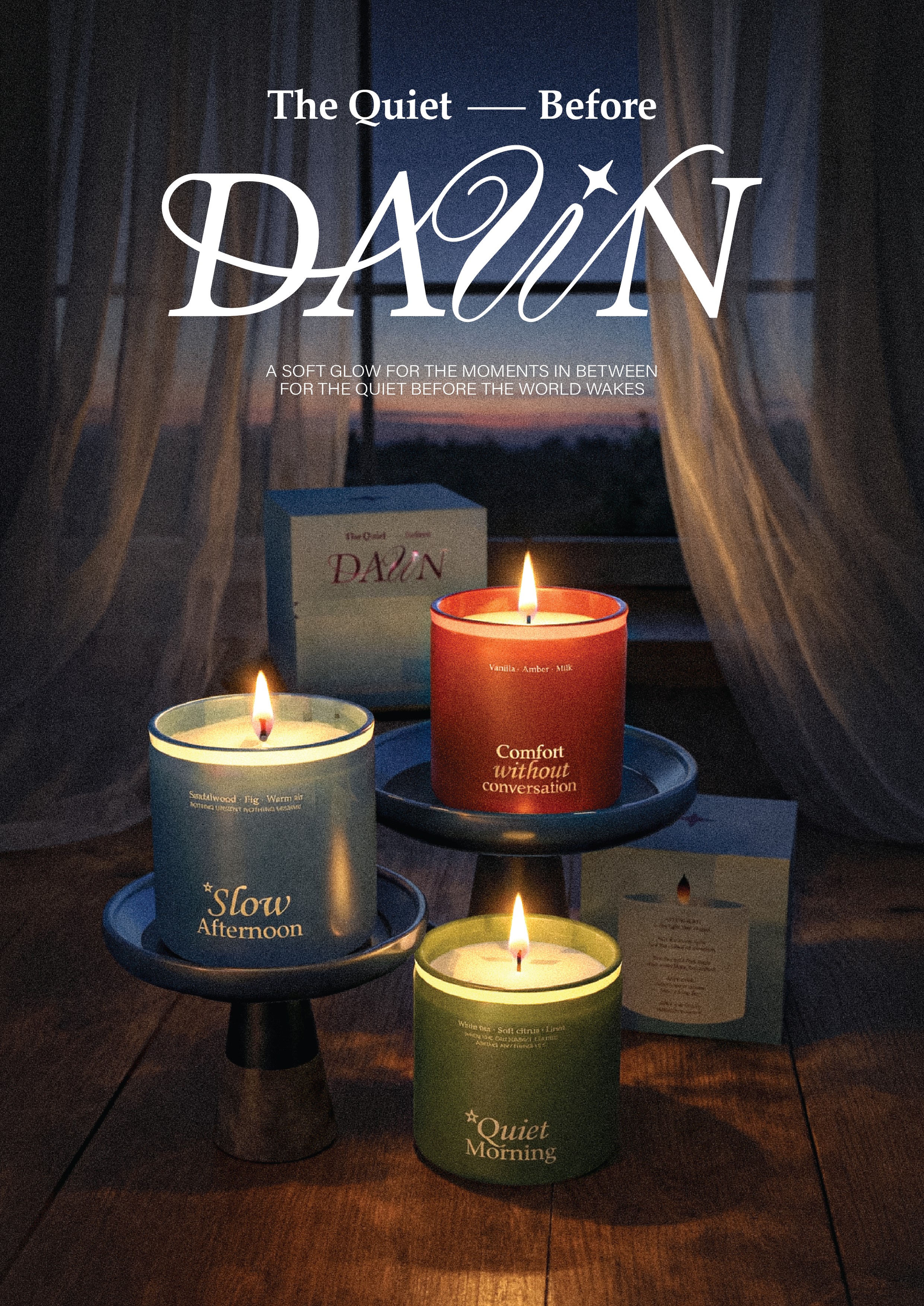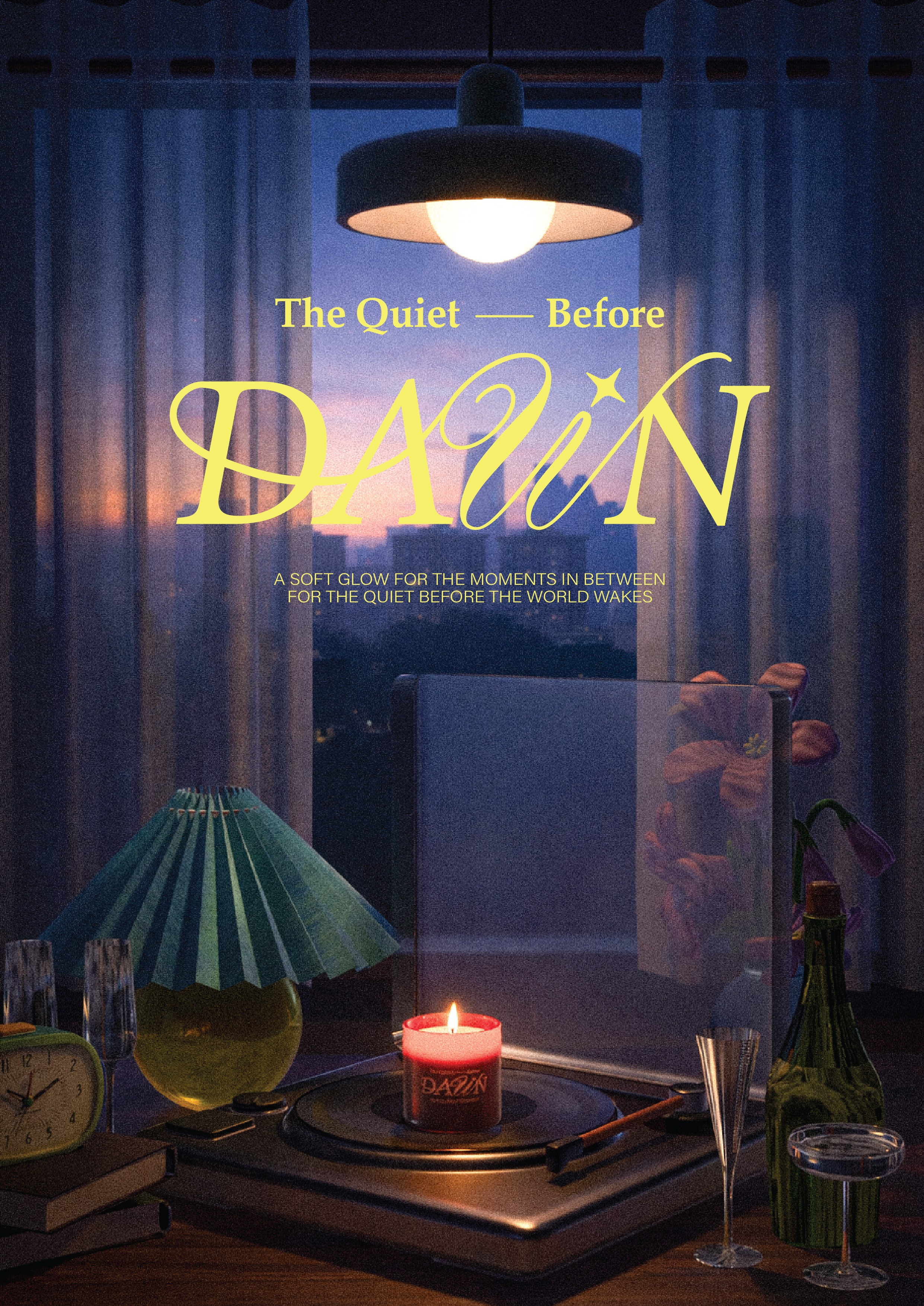 space, and light to reflect the concept of “The Quiet Before Dawn.” Soft gradients, diffused lighting, and muted tones