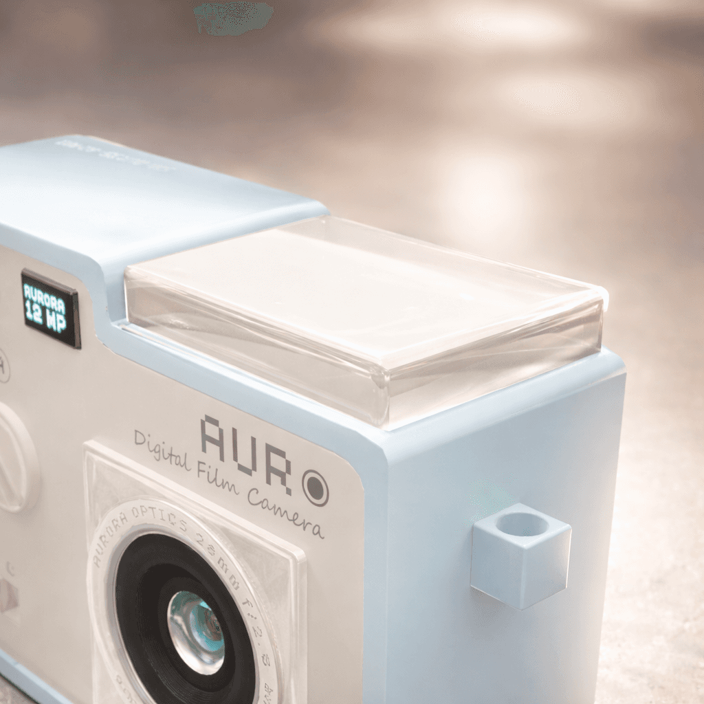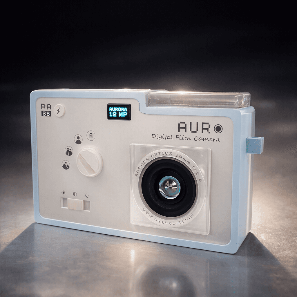 Pixel Status Display: A retro-style digital screen indicating the "Aurora 12MP" resolution, adding a touch of 8-bit charm.
