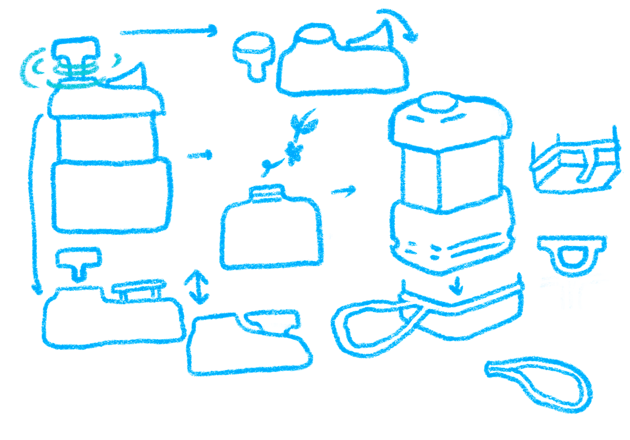 Modular System: A packaging structure designed to interlock and arrange as a complete set, representing all four natural elements in harmony.